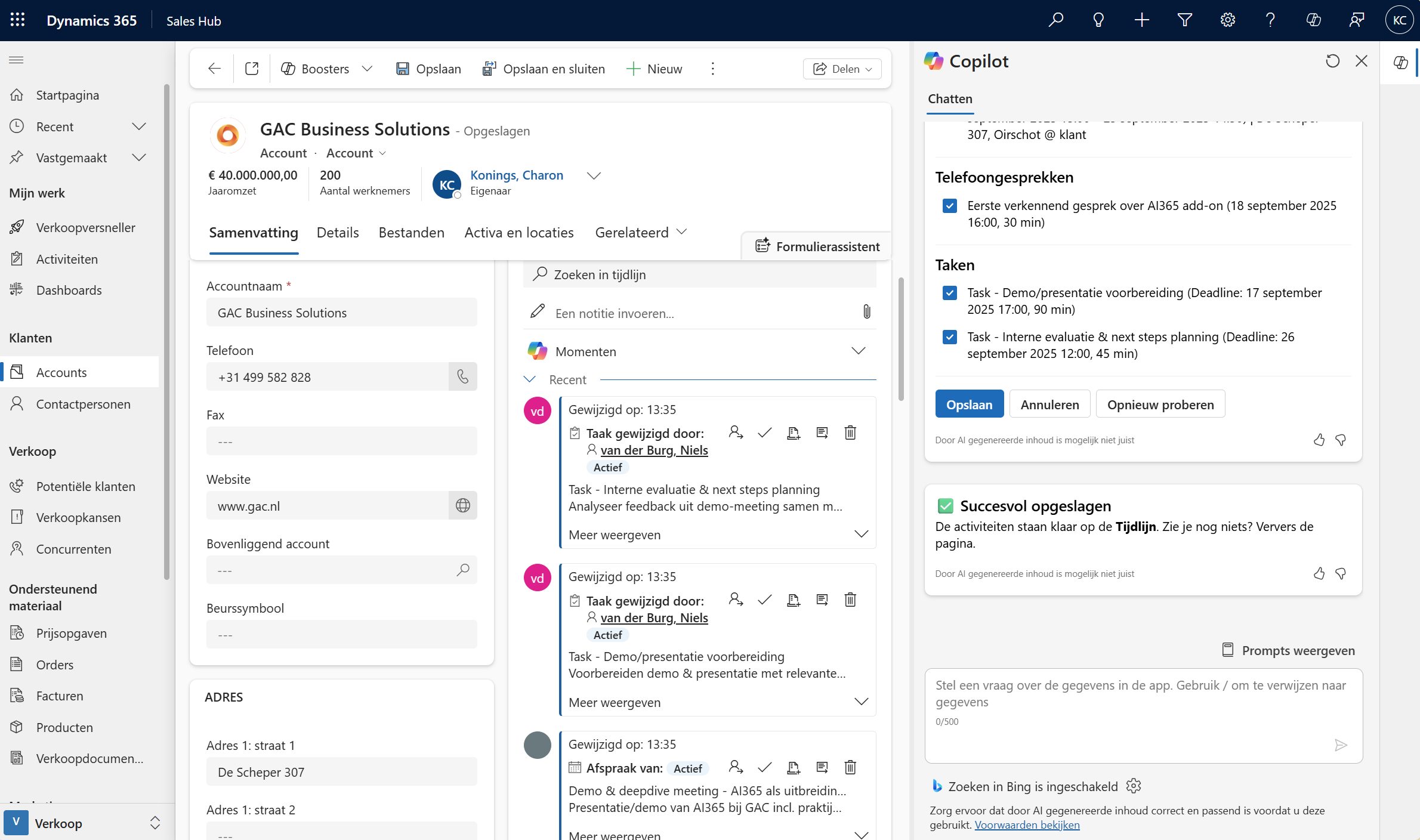 • Klantbezoeken, follow-ups en interne acties laten genereren door AI