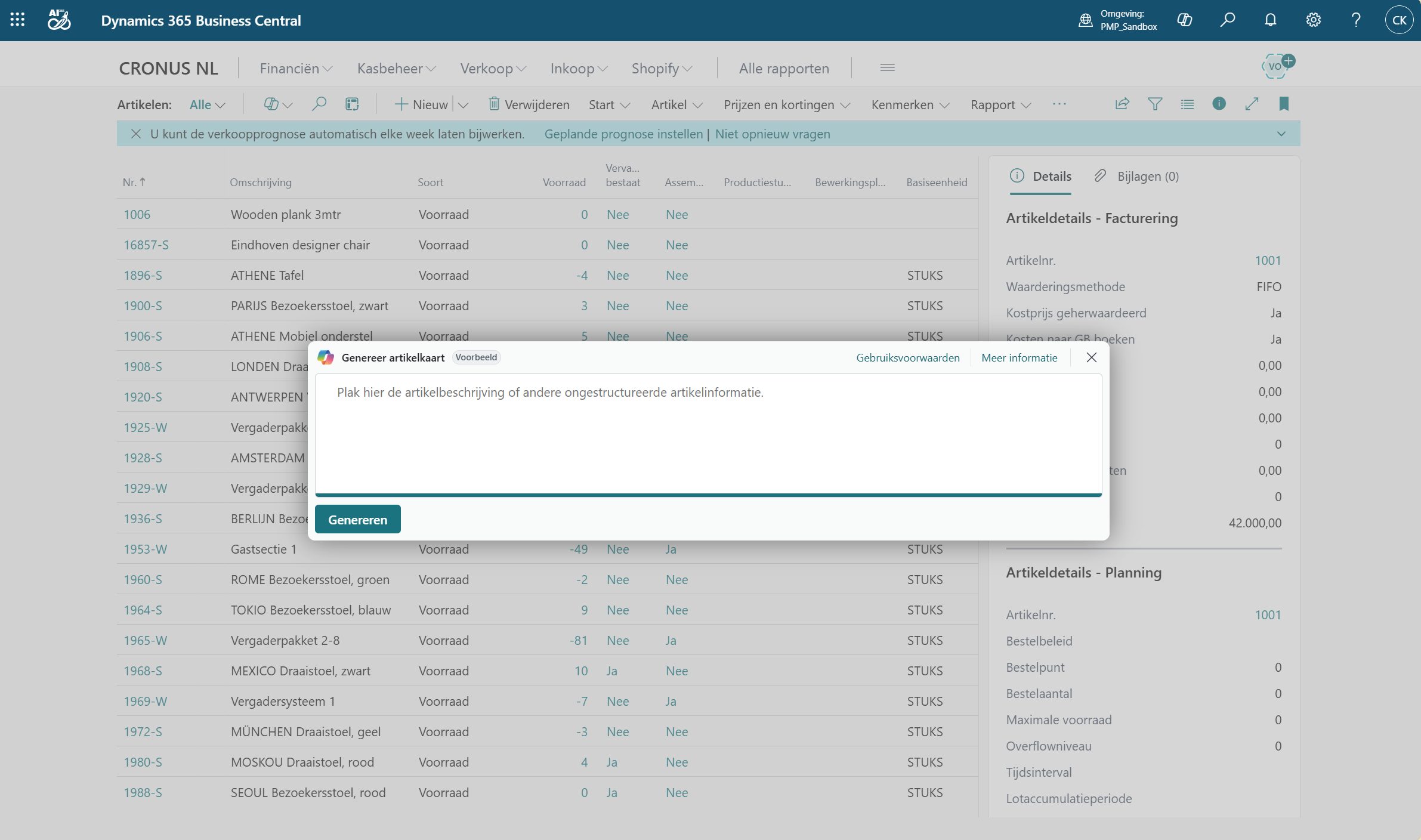 De Item Creator Booster maakt het aanmaken en actualiseren van artikelen in Business Central aanzienlijk sneller én consistenter. Medewerkers kunnen platte tekst, leafletfragmenten of gekopieerde CSV-regels plakken, waarna de booster automatisch de relevante velden herkent en omzet naar complete artikelkaarten. Dit werkt zowel voor één item als voor bulkcreatie. Voor updates worden bestaande items gematcht en wordt per veld een wijzigingsvoorstel gedaan.
