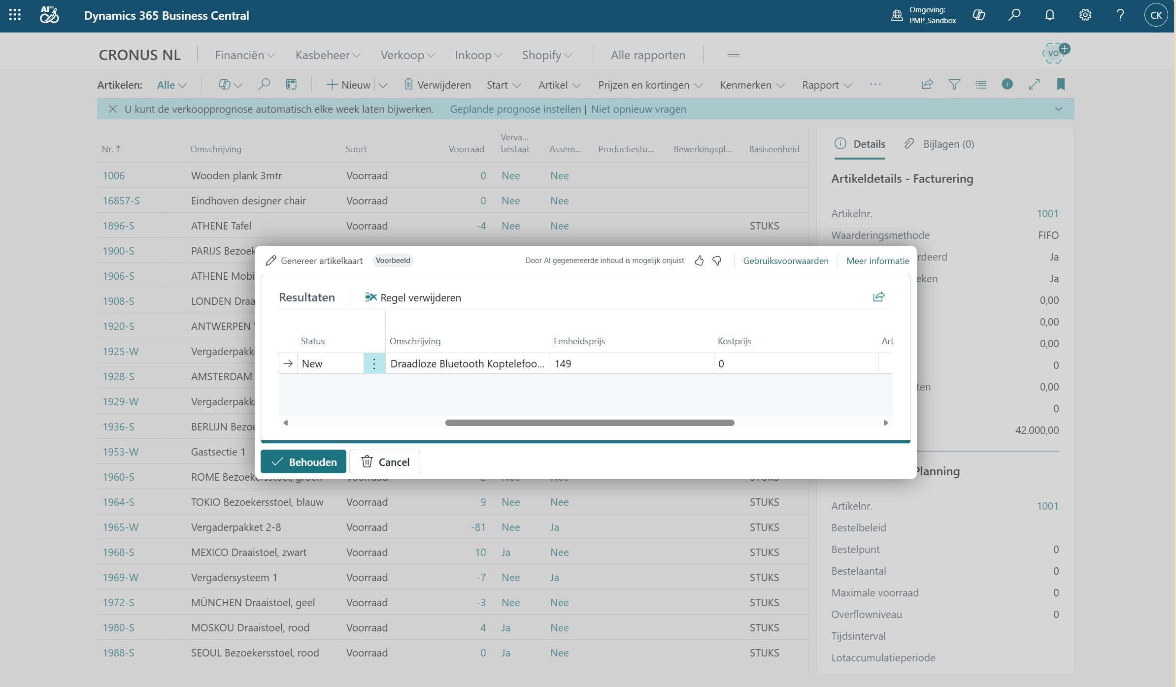 • Per item een AI-gegenereerde voorstelkaart bekijken én inline corrigeren