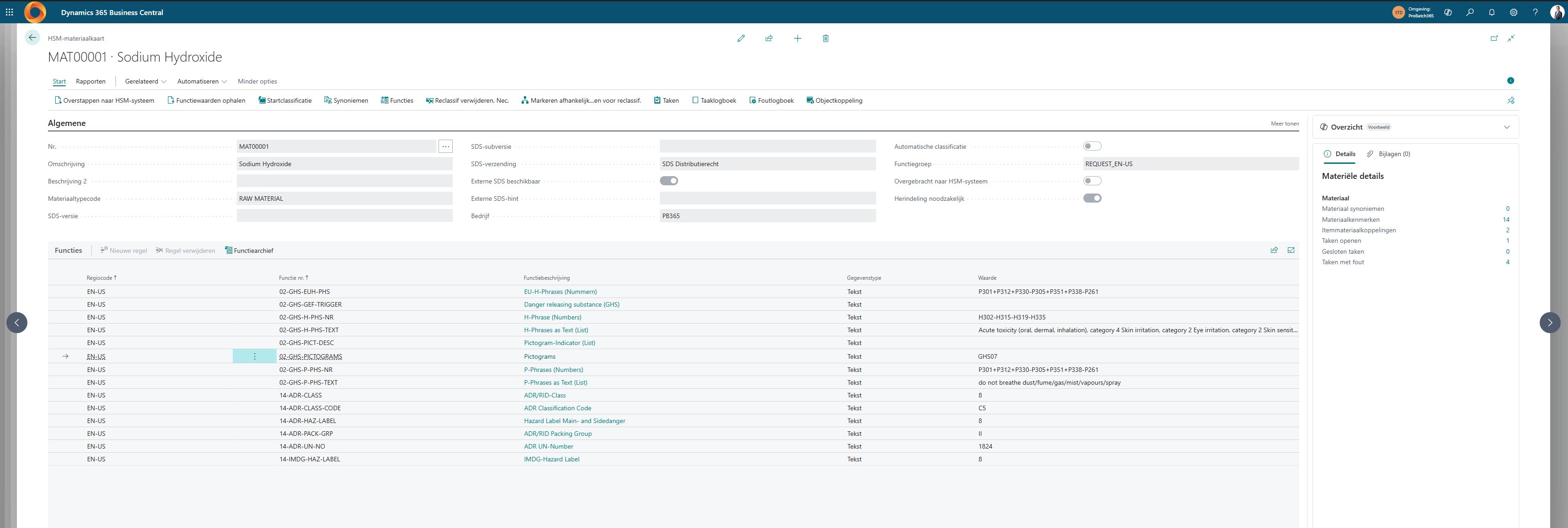 ProBatch365 verbindt met gangbare Hazardous Substance Management (HSM) systemen zoals Chemdox of epos. Daardoor worden veiligheidsinformatiebladen (SDS) en gevareninformatie (zoals GHS-classificatie) automatisch uitgewisseld en opgeslagen in Business Central.