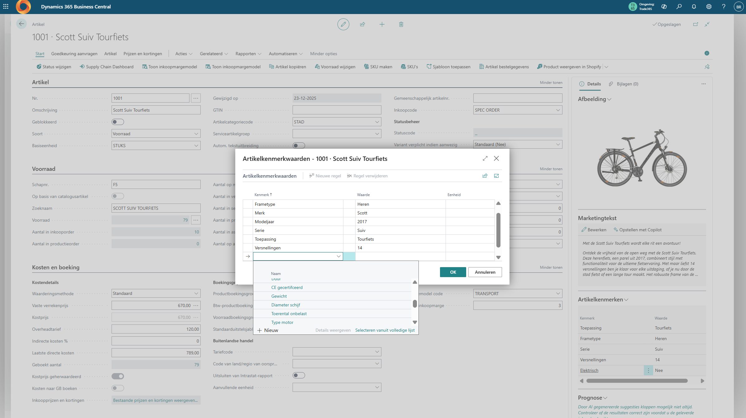 - Afbeeldingen en media: Naast het toevoegen van een productfoto biedt Business Central ook de mogelijkheid om aanvullende documentatie te koppelen, zoals productbladen, handleidingen of certificaten. Dit kan op twee manieren: